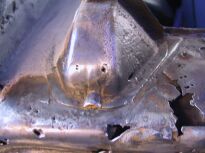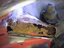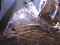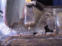 | Die vordere Ecke war vorn (Bild 2064), im Schwellerbereich (Stehblech,