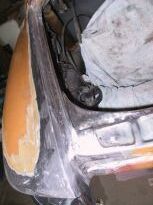| Nach dem Heraustrennen des Kastens zeigte sich, dass das Heckblech